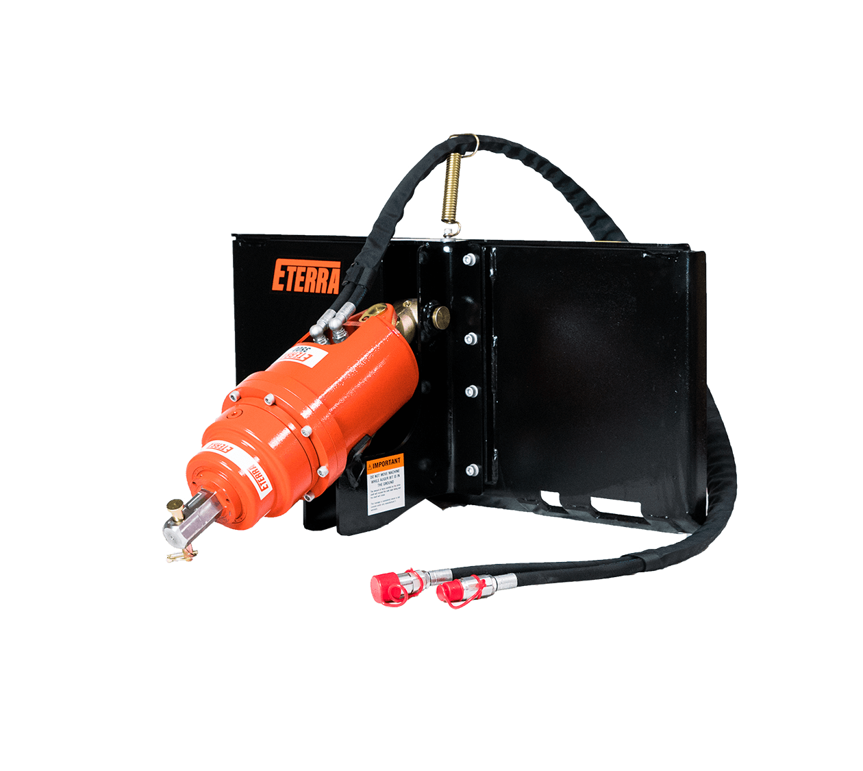 Eterra Auger systems for skid steers and excavators are widely known for their reliability and toughness. We feature three auger models covering flow ranges from 7-30 GPM. Confidently drill in tough earth conditions, and add versatility to your machine with useful accessories and extensions. This will be your new favorite attachment.