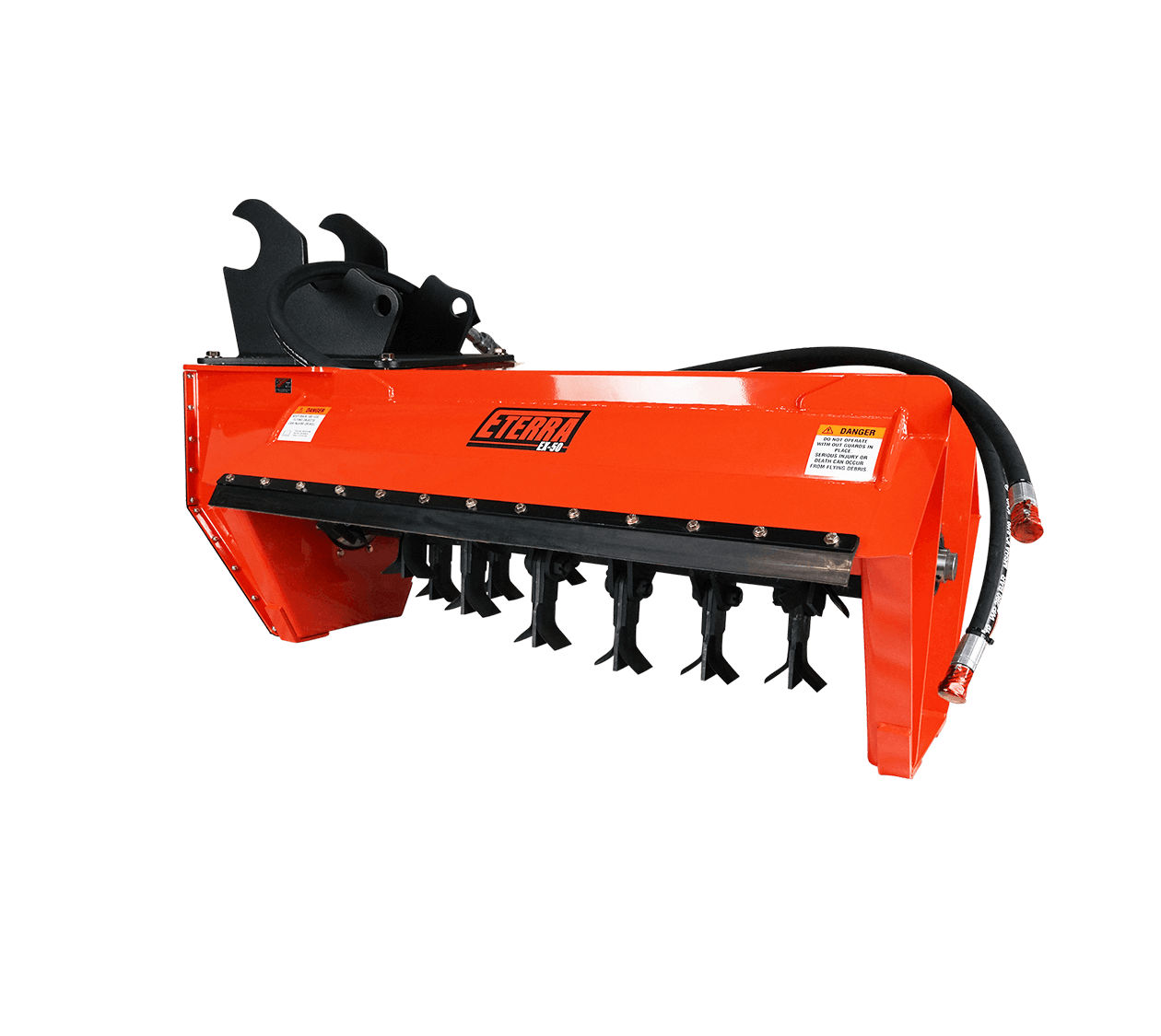 The Eterra line of EX Flail Mowers are compatible with most models of excavator machines and provide a wider range of cutting options. This style of mower produces a clean, finished cutting area with smaller debris than a rotary mower – meaning less cleanup, and more time operating. The EX line is designed and manufactured in the USA, with a focus on accurate GPM pairing to get the most power your machine has to offer.