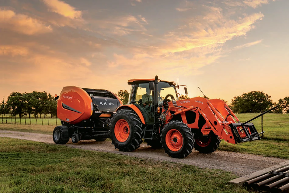 The Kubota M5-091HDC combines a 92.5 HP Kubota diesel engine with a premium factory cab and smooth 12-speed hydraulic shuttle transmission. Built to handle livestock, hay, and utility work with ease, it’s a proven performer for small to mid-size farms.