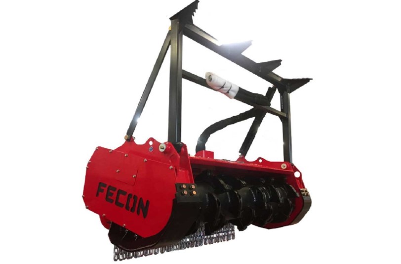 Fecon® offers a full line of hydraulic Bull Hog® mulchers for your skid steer. These mulchers are ideal for high flow skid steers to clear brush, trees and stumps down to ground level. Quickly mulch standing trees 4-6″ in diameter (depending on horsepower) and intermittently process 6-8″ trees.